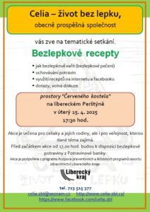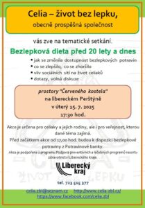 Zveme vás na besedu na téma Bezlepkové recepty, která se koná 16. 4. 2024 v 17,30 hod. v prostorách “Červeného kostela” na libereckém Perštýně. Akce je určena celiakům, jejich rodinám i široké veřejnosti. Více informací v pozvánce a zde. Pro zájemce budou...